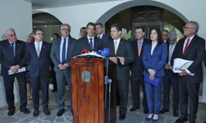 “Esse é o espírito de colaboração que o parlamento tem em relação à agenda do governo. O parlamento precisa estar ladeado às agendas do governo. Colaborando e contribuindo para melhorar e aperfeiçoar essa agenda com o olhar do parlamento”, disse Alcolumbre, acompanhado dos três ministros no fim do encontro, na residência oficial do presidente do Senado.