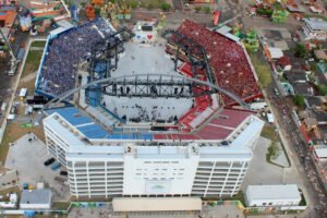 O governador do Amazonas, Wilson Lima, anunciou na sexta-feira (28) a intenção de construir um novo Bumbódromo, palco das apresentações do Festival de Parintins. O plano, segundo ele, é licitar a obra no ano que vem e iniciá-la em janeiro de 2026. A estimativa é de que a construção leve dois anos.