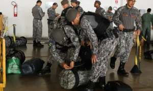 A Força Nacional de Segurança Pública está deslocando 100 militares ao Rio Grande do Sul para auxílio às vítimas das enchentes no estado. A medida foi autorizada nesta sexta-feira (3) pelo ministro da Justiça e Segurança Pública, Ricardo Lewandowski. Em nota, o ministério informou também o envio de 25 caminhonetes, dois ônibus, um caminhão e três botes de resgate, para apoio das ações.