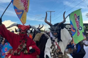 Os participantes dos Caretas arrastam multidão no carnaval guiratinguense. Os foliões com os rostos cobertos por máscaras artesanais simbolizando figuras mitológicas, imaginários monstros, bichos e vultos caricatos invadem a cidade.