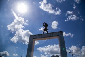 A foto é um monumento ao garimpeiro em Guiratinga.