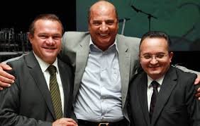 Zeca Viana acendendo vela para Wellington Fagundes e Taques
